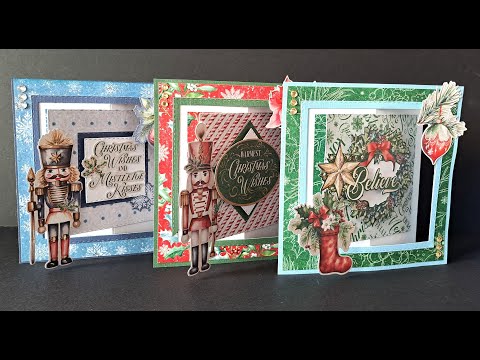 I really enjoyed getting more of my Christmas Cards made today. These Swing Cards may look complicated but they are very easy to make and are a great way to use your ephemera and die cut pieces to really make your cards pop. I used Graphic 45's Deck the Halls collection but they would fab in Halloween designs, or with floral images too. All instructions are in my YouTube video.